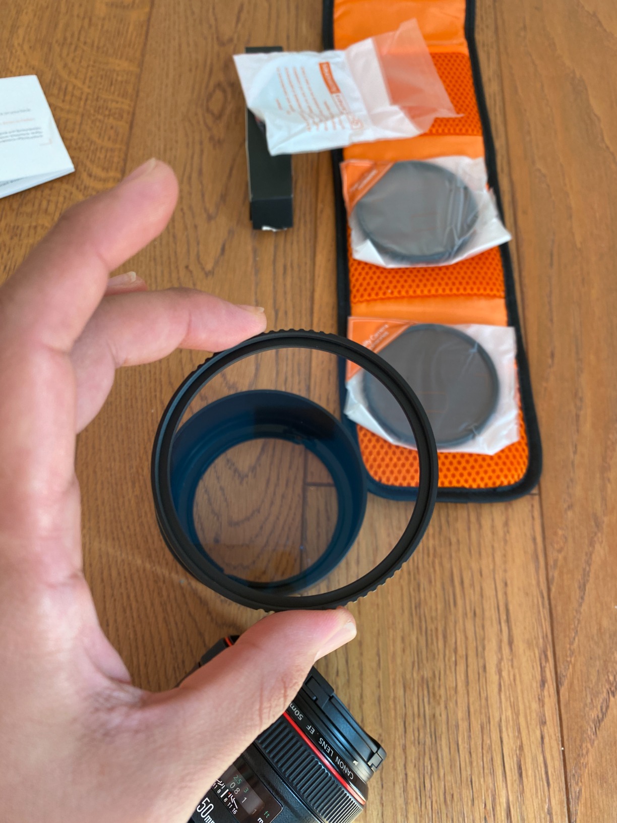 Comprei este kit para minha lente "nifty fifty" Canon 50mm 1.2 L na minha Canon 5D Mark IV, e eles são muito bons. Você recebe três filtros: (1) ND4, (2) CPL e (3) MCUV, todos bastante úteis em diferentes situações. Um grande ponto positivo é o estojo incluso, o pincel macio e o preço. No geral, eu recomendaria este kit para qualquer fotógrafo que trabalhe tanto em ambientes internos quanto externos e que queira reduzir significativamente a reflexão!