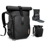 Mochila para câmera K&F Concept 20L Nature Wander 11 preta, bolsa de viagem à prova d'água para fotografia com compartimento para laptop de 15,6", suporte para tripé e armazenamento expansível para fotógrafos