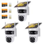 4G Câmera de Segurança Solar Sem Fio para Exterior com 3 Lentes, Vídeo Full HD 6MP, Câmera de Segurança Doméstica com Visão 360° Pan/Tilt e Visão Noturna Colorida, Fácil de Instalar, Alarme PIR, 3 Unidades, Kentfaith