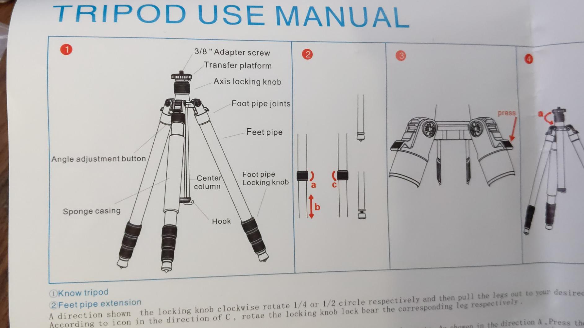 Na Amazon, você pode gastar $ 12.000 em um tripé. Você também pode gastar apenas US $ 20 em um tripé. Nesse caso, você está gastando pouco mais de US $ 100 e obtendo um excelente tripé versátil. Pode não ser o produto de alta tecnologia e top de linha que existe, mas para o fotógrafo ou cinegrafista sério, esta é uma solução excelente. Adoro o quão alto pode ser. Tirei uma foto minha ao lado dela. Eu tenho 175 cm de altura. Se você colocá-lo no modo monopé, poderá torná-lo ainda mais alto. É bastante flexível. A principal desvantagem é que as instruções são bastante escassas. Tirei uma foto de todas as páginas relevantes. Por outro lado, a operação é bastante intuitiva, portanto, com um pouco de manipulação, você poderá descobrir como fazê-la funcionar. Tudo é bastante suave. Você não tem uma sensação espasmódica. Tudo parece bem lubrificado. Espero que as fotos sejam úteis para dar uma ideia do que você obtém. Eu também gosto que ele vem com uma bolsa de transporte com uma alça de mão bonita e alça de ombro que é opcional. No geral, é um valor excepcional. Eu recomendo. Eu tenho filmado em todo o lugar. Esta será uma adição bem-vinda ao meu arsenal.
